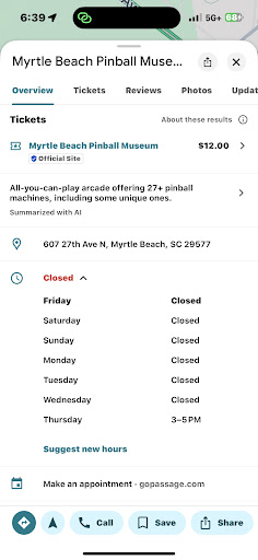 Read moreWe were in Myrtle Beach for a week and purchased tickets inadvertently we purchased the tickets for the next. The next week when we would no longer be in Myrtle Beach… they have no phone number which would let us talk to a human being, to explain the error immediately after we purchased the tickets for the wrong day.