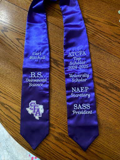 I highly recommend Downtown Arts for your embroidery needs. They also had a nice selection of gifts and artwork at the front of the store as well. My SFA stole embroidery was finished in just a little over a week and turned out exactly as I hoped! I also placed my order during peak spring graduation season, so I was so grateful they were able to complete the order before the commencement ceremony. I attached a photo of the work done for $48 (I had a lot of text).