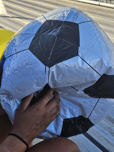 I was in a rush, so I picked up my bag of balloons and left. Unfortunately, by the time I got to the school (about 20 minutes later), I noticed that the soccer ball balloon was already deflating. I hoped it might bounce back, but it only got worse. I eventually discovered a hole in the balloon and had to remove it from the display altogether.
