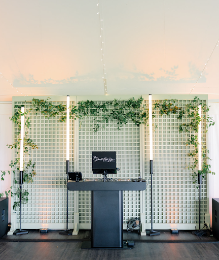 His setup was stunning, from the perfectly placed monogram lighting in the center of the room to the beautiful uplighting spread throughout the reception space. Everything looked and sounded incredible.