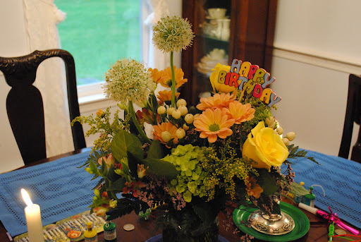 I have received loose bouquets, as well as floral arrangements. The flowers are always fresh, colorful, plentiful, and beautifully arranged. The delivery that we received on May 23rd was no exception. (And we were so pleased that the colorful latex balloons remained ceiling bound for several days past our birthday celebration.)