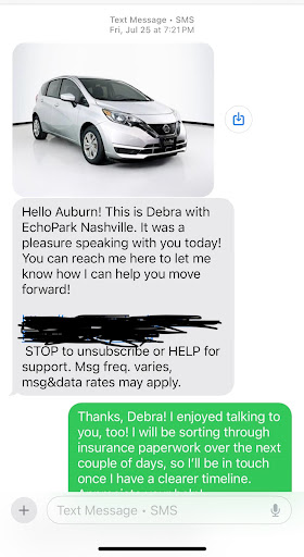 Eventually, after nearly a week, the listing quietly vanished from their website with no warning. When I followed up again, I was told (casually, after they had forgotten who I was and what car I was asking about, even though we had been in communication every day they were open) that the vehicle I’d been waiting for was actually located in Charlotte, North Carolina. Not Nashville. Something they only mentioned after it sold. (And no, they reminded me, they don’t transfer cars between locations. Just so I’m aware.)