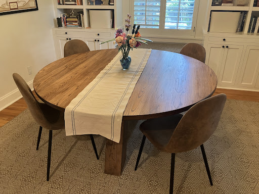 Read moreWe needed a large custom table for our home because we have weekly extended family dinners. I sent Steve a photo of a table I found on his instagram and that I needed it to be larger. He finished it exactly when he said it would AND let us store it in his warehouse until we moved into our new home. He was great to work with and communicated so well. This piece is something that will last us forever and hopefully be passed down to generations. The quality and detail is amazing. We are so impressed and we get tons of compliments. I also love the thoughtfulness of leaving his logo and a verse on the inside...