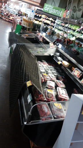 The produce section is sparse nearly all the time, and is often about 75% empty. I planned on picking up some grapes a while back, but when I saw the dirty floor mats draped over the grape cooler, and the cooler not running & at room temp, I was apalled. I've included a photo of that occurrence.