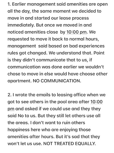 Read moreI lived at Margaux Midtown for over two years and was initially very happy here. The apartments are beautiful, amenities were well kept and I felt very safe. I renewed my lease from June 2025 through September 2026. Unfortunately, my experience changed drastically when new management took over. From May to September 2025, I experienced constant billing errors, unexplained charges, ignored emails, and contradictory communication. When I went to pay June's rent there was a large increase with no explanation. I called and emailed with no response. When I went into the office, I was told my signed lease renewal âcouldnât be found,â so I was switched into a month-to-month rate. I decided to terminate my lease, giving proper notice and an hour later, management happened to âfindâ my lease. From then on, I received late notices despite paying in full, emails about needing to enter my apartment for maintenance requests that I never submitted, charges that were posted and then reversed multiple times, and eventually $4,600+ fees sent to collections without ever being itemized or communicated to me. After going back and forth for two weeks, everything has finally been resolved and I hope to never deal with these issues again. The lack of communication was the most frustrating partâI had to chase down staff at every step just to get answers. I thoroughly enjoyed my experience at Margaux until recently. My neighbors were all amazing, apartments and amenities were beautiful, but management was disorganized and unresponsive. I hope these issues were isolated and due to a change in management and that it is not reflective of everyone...