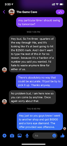 You not allowing your staff to price match (which provides a bad experience to the customer) is on YOU. I've actually discussed with multiple other game shops in the area about my experience with you.
