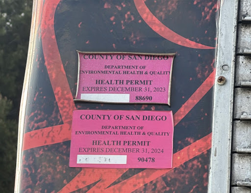 While waiting, I started to notice a strong, unpleasant smell—like old, overused cooking oil. Then I saw something even more concerning: the food truck had expired health permits posted on the outside. I walked around the entire truck thinking maybe I missed a valid 2025 sticker, but it was nowhere to be found.