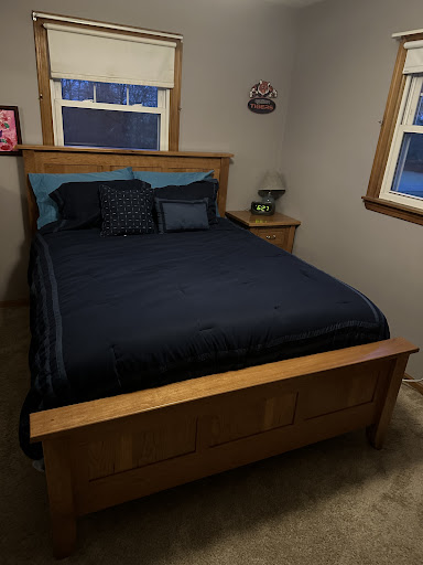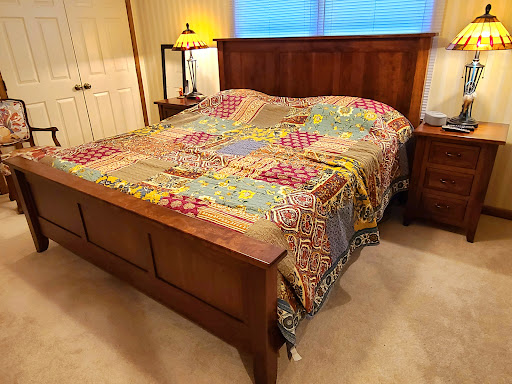 We had this King Bed frame custom made to fit our Personal Comfort adjustable bed, along with two matching night stands, all of cherry with a dark stain to match two existing dressers. We increased the height of the headboard & footboard to fit the mattress height. Farmstead just increased the price a little to cover additional material & labor over what their original design price was. So nice to find a builder that will make changes to fit a customer's needs. The finish is excellent, joints are perfect and we got all three pieces for what furniture stores charge for just a bed frame. Very helpful & nice people to work with. Our go-to builder for...