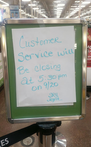 This entire time, there has been a woman in a gray shirt leaning on the gates by the exit door, watching as I engaged employees. Red vest walked over to her, she stood up and I saw that she was wearing a Kroger name badge. They spoke back and forth for a moment, and then the woman straight up smirks at me and says, "The service desk doesn't open until 4" shrugs her shoulders at me and makes a face.