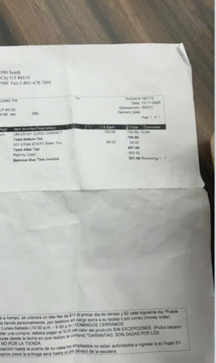 We bought a dining table, 6 chairs, a sideboard, a large couch, a coffee table, and another small table. After we got home, we decided the couch was too big. We called her and she took it off the sale and refunded the cost, no problem. She delivered everything else the next day. She has a lot of energy, is very competent, and a great pleasure...