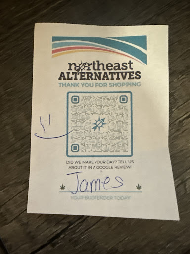 Read moreJames at Northeast Alternatives is exactly the kind of budtender you hope to meet when walking into a dispensary. His confident, friendly demeanor immediately puts you at ease, and his deep product knowledge is truly impressive. He took the time to understand exactly what I was looking for and offered thoughtful, well-informed recommendations.