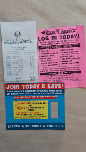 Read moreIf you are looking for quality products,at the lowest prices available,do not look any further! Ollie's establishment is great! I have been, a very happy repeat customer, for many years.Ollie's, even gives you a rank structure, for higher discounts. Ollie's Generals, get tremendously deeper discounts.The deals at Ollie's are awesome! My friends,(hint)their inventory, moves very quickly. Open the account today ! Your satisfaction with low priced, higher quality products, is guaranteed. All these products,are in excellent condition.If you do have some questions, or find a defective item,the Ollie's Staff calmly understands & solves problems. Providing solutions, is one of Ollie's Staff, strong multi achievements.By making you comfortable in their stores, Ollie's personnel,is happy & takes it very seriously. (Tip) Ollie's is a great place to grow your family's home inventory supplies, in case of a serious National Emergency shortage. Let us enjoy the many fabulous, savings together,go to Ollie's today! (Tip) Reselling at Flea Markets, is very profitable. Never hesitate,time is valuable, the savings for your family are...