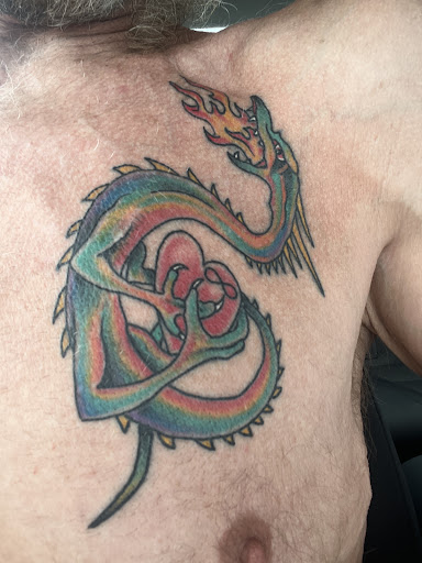 Read moreThe crew at Comal River Tattoo are informed and personable. Each artist seems to have artistry top of mind with tattoo traditions in the mix as well. It was my first tattoo. I am nearing 67 and had thought about getting one all my life. I knew the dragon was where I was going, never knew how I was going to get there. Well the staff knew I didn’t exactly know how I would arrive at the design I wanted as it was in pieces not yet joined and its placement underdetermined. I was introduced to Mike Penick, who understood my vision, and ran with it. Simplicity in the design, I liked that Mike walked and talked me through it all. Want the best; Mike knocked the cover off the frickin ball!...