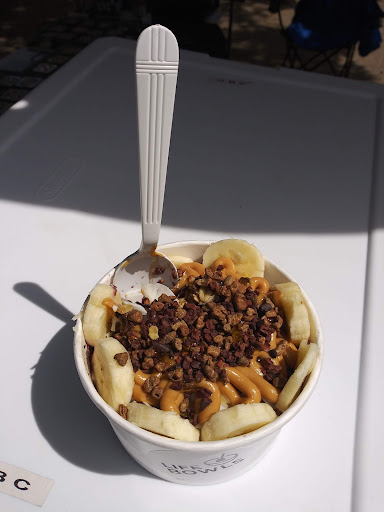The Jitter Bus, a converted coffee truck, anchors one end as the unofficial town square. Customers queue for Saturday caffeine while dogs socialize and families browse Seacoast Mushrooms' impressive fungi display. SoNo Baking Co. draws its own loyal following, their tent positioned strategically near the school's covered walkway.