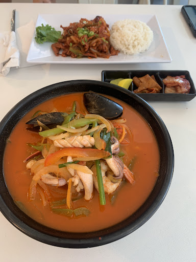 I took a stroll through the store to see what it's about. Prices seem fair. the produce was spotty; fruits look very nice, but the lettuce and other greens, a bit sad and wilted. I ordered a latte that was well made and in all ways good. Learned that nearly all the baked goods are purchased frozen and sold thawed; not sure I'd call that "fresh." In the refrigerator section, I was intrigued by a small container with "squid salad." I love squid, and have enjoyed many a squid salad in the Mediterranean vein. I brought this small container back to my office, and on first bite, I discovered something so unlike any squid I've ever had...and not in a good way. Not just chewy like how over-cooked squid can be like eating rubber bands. These pieces were HARD, and hard to eat. The spicy chili flavor, very nice, but otherwise, I would give this particular concoction one star, and that would be generous. To be fair, other things looked very nice, and the cooked options also...