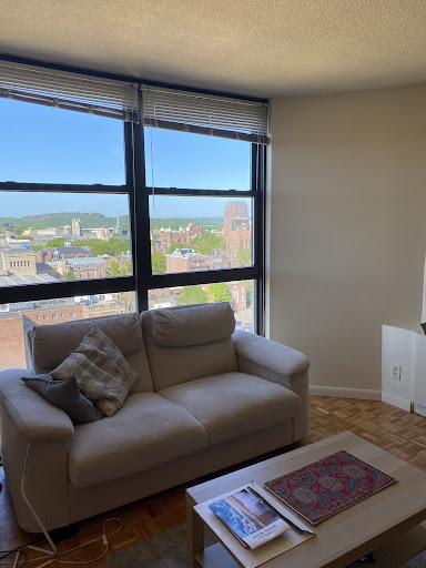 We took over our apartment from a graduating law student. The unit has floor-to-ceiling windows from which I can view a gorgeous horizon that stretches from Sleeping Giant all the way to the Long Island Sound and a panoramic view of the Yale campus. The generous balcony has been great for hosting July 4 parties and outdoors breakfast gatherings. All the other tenants on the floor this year are medical students, resident physicians, scientists or fellows. The atmosphere is very quiet and respectful. The community has been incredibly warm and welcoming to my young daughter, and being amongst such wonderful people has been great for her social development during Covid. Having the Yale campus as our backyard has been an extra bonus. I couldn't be more grateful for this amazing community and the quiet, restful and kind setting it provided me and my family over the course of my...