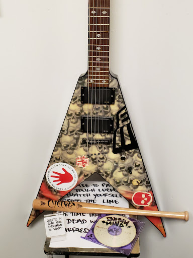 The owner decorates the shop with a lot of stuff that he was I believe using for his hardcore music museum and even if you aren't into hardcore music the art and artifacts on display are neat.