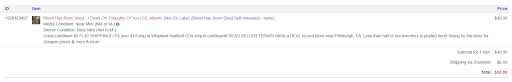 Read moreI really hate to have to rate a non big box store so lowly. I know I will receive a reply to this as all other non 5 star feedback receives similar responses. This is my honest review of my experience with Preserving selling on Discogs. My item arrived damaged and improperly packaged, the seller stated in their selling terms it would ship in a whiplash mailer, which this is not and that it was in near mint condition, which may have been the case pre shipment but did not arrived in said condition. They did ship on time which is greatly appreciated however the contact I've had with them has been less than stellar. I sent a response over discogs and was returned nothing but hostility in return as the photos below can show. I'm sure there are good people working at this shop who are not involved in my situation however this was extremely disappointed and far from...
