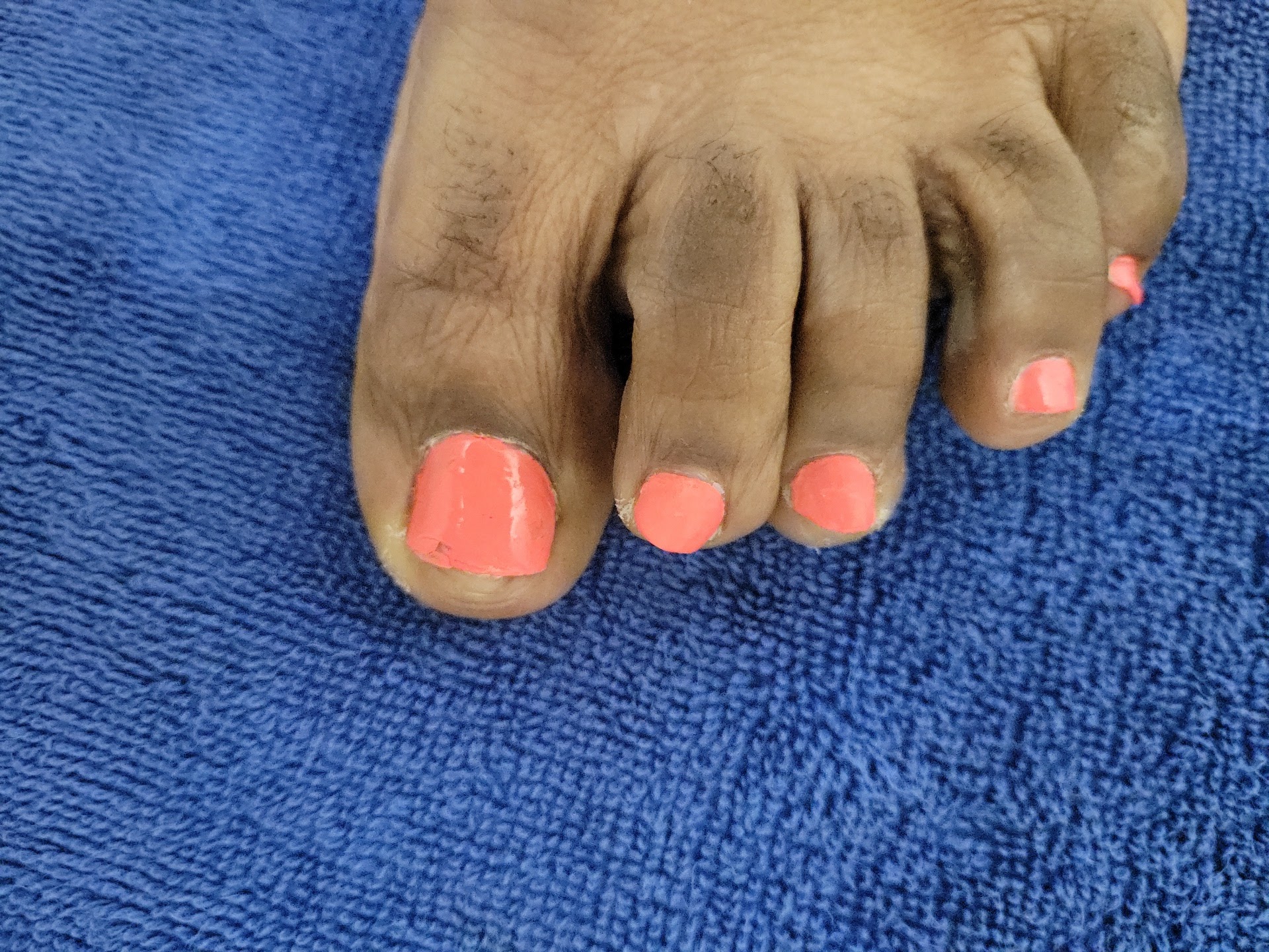 I go back to the pedicure area, and the older lady and I are talking and comparing issues. Eventually, her nail technician removes her polish, and as she's about to apply the top coat, we realize that may have been the issue, so she opens a new bottle. I walk over to my tech to tell her what the boss lady said. It went so downhill from there. The woman threw a real-life tantrum. There is no other description for an adult bopping up and down with arms flying denying that anything is wrong with the nails. She did this whole scene two more times. The other customers had to get involved because I refused to argue. She has eyes just like me, and everyone could see it but her. Her solution was to add a third coat of polish rather than redo it. I let it all play out because I'm not the professional. She is. It looked terrible...it was wavy because the nail below wasn't smooth, and a large piece of cuticle was there and painted over. She took that cuticle off and was forced to remove the polish because now there was a hole in the polish smh.