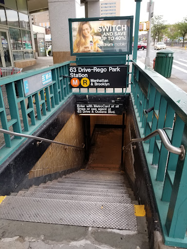 63rd Drive-Rego Park is situated in the Rego Park section of Queens, the station is served by the R train during weekdays and weekends, the M during weekdays, the E during weeknights, and the F during disruptions. 63rd Drive is a clean and well maintained station, however like every other station on the Queens Blvd line, R and M train service is not frequent, when fast E or F trains pass the station it is quite loud. The station usely smells normal but there are homeless men...