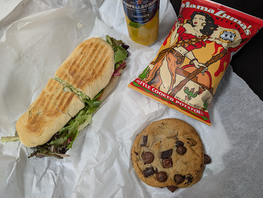 Read moreOrdered for delivery and both times have been great. This time, I got their Sandwich Time Special and Chefs Choice Side. The Sandwich Time Special includes a panini with house made fresh mozzarella, pesto (nut free), tomato, and greens, a bag of chips, a chocolate chip cookie, and a drink. I think it's an amazing deal. The panini was enough for me to save half for the next day. The cookie was huge and honestly one of the best cookies I've ever had. I'm usually picky with cookies since most tend to be too sweet for me, but this cookie was the perfect amount of sweetness. The spicy chips were good, but way too spicy for me. I would definitely get this meal again with a different bag of chips. The Chefs Choice Side of the day was a refreshing...