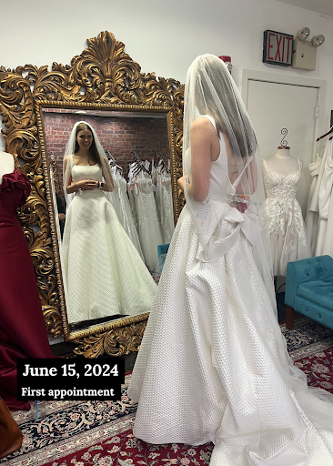 I first went shopping for my Nov 2023 wedding dress in October of 2022. Adrienne’s was the second bridal shop I went to after going to a local David’s Bridal. I was there for a Lillian West trunk show. I actually almost said yes to a Lillian West dress sample at the time, but after mulling over it, I decided that I had more than enough time for my wedding, so I actually walked away from the dress. Which is fine, wasn’t the right one for me in the end.
