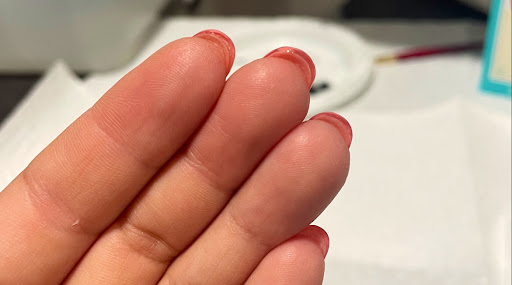 As she was painting my nails, I noticed she spent a lot of time painting the tips of my nails, which is pretty unusual. Low and behold it’s because of how THICK my nails are now!!! It looks gross. My nails are chunky and Unsmooth, with the beds of my nails also being uneven because of how much she put on.