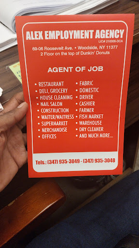 Read moreI had a bad experience with Alex Employment Agency. Alex himself was ok but the assistant Ms. Lee was pretty disrespectful and impolite the entire experience. She patronized me as she was interviewing me and even didn't believe that I speak Spanish implicitly because I'm white. She offered me the lowest jobs she had and it so irritates me to this day that I had to leave a review. Run from this place. They even charge you an arm and a leg for their service when better agencies like Express don't...