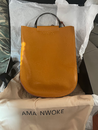 Read moreThe Ama Nwoke Leather Tote with Smoke Grey Handles is the perfect size, stylish, and essential soft leather tote. This beautiful and magnificent find comes in a rich and warm sunflower yellow color; which makes it a staple piece that can be styled season to season. Exceptional quality and craftsman ship! It's perfectly sized, being neither too big or too bulky; just enough to hold your necessary essentials plus a little more if needed. Needless to say I am completely in love with it and it will definitely be in constant rotation with my with my Winter, Spring, Summer and Fall fashions. The Ama Nwoke brand is amazing and has a fabulous collection of fashion and accessories.