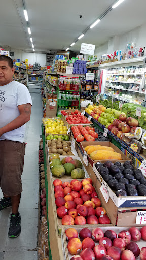 This is a grocery store with a varied selection of products. They range from the useful (milk) to the eclectic (aloe vera beverages) to the strange (incandescent light bulbs with Spanish writing).