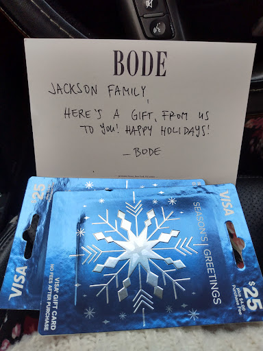 Good morning okay guys I should go check out this place they're in New York they have very nice clothes and they are so sweet guys so I came home one day and I got a delivery from this company and they gave me a card saying here's a gift from us to you happy holidays the Jackson family I thought that was really really sweet so I looked into the box and it was two sticks that can go to Christmas tree for the candy and I'm like what is this and they gave me two gift cards of $25 so it equaled up to $50 guys you got to go take them out thank you for the card guys I really used it and I really appreciate it Happy New years and you guys got to go check it out God bless no stress let's get it I love it I love it I love...