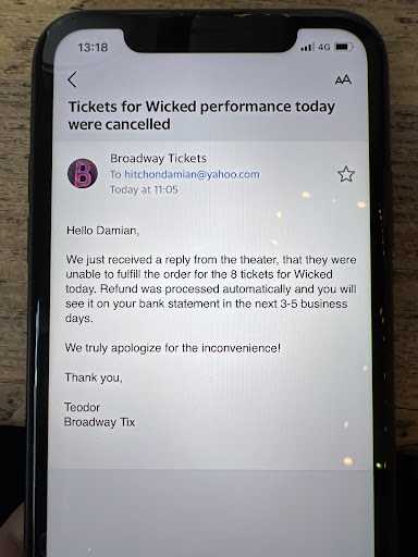 Original: DO NOT BUY FROM HERE. THEY WILL MESS UP, BLAME YOU AND YOU’LL BE LEFT WITH NOTHING. They took $310, sent me the wrong date and refused to give me my money back or exchange the tickets. They admitted that their computer system made an error and sent the tickets for the day before we wanted and we didn’t realise until we scanned our tickets at the theatre. Well, 15 mins to curtain we’re then spending more money as we were panicked, flustered, and very upset as it was my birthday. Apparently we should have called them even though they had already closed and it was our fault. The only option they’d give us is giving matinee tickets to the same show. We had already seen it and had another matinee booked so there was no way we could take it. It was that or nothing and again we were told it was our fault and they won’t do anything even after ADMITTING THE COMPUTER MESSED UP. It is an absolute joke of a service. I understand mistakes happen and it was their system, not an employee. We went in completely reasonable as two people who have worked customer service was years and know what it’s like to be screamed at. We’re now out $310 ($600 if you include the tickets we then bought at the theatre box office). DO NOT BUY FROM HERE. THEY WILL MESS UP AND BLAME YOU!!!!!! The lady was so incredibly rude about the whole situation. Honestly, it’s an awful situation but I would have been more palatable if she was at least sympathetic but she did not give a ** about us being out $310. It’s a shame because they have such good reviews but they absolutely dropped the ball in their customer service. I understand no refunds or exchanges for people changing their mind, but again, they admitted their system messed up and still said no refunds...