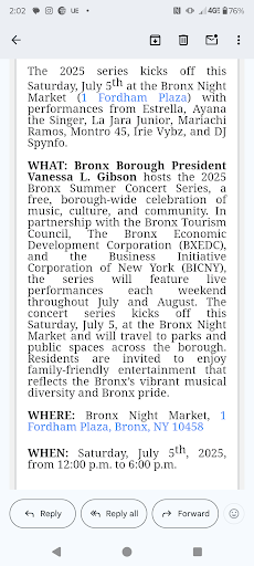 Read moreHave been coming from the first bx night. I miss the liquor vendors who used to come. This bx night was larger with more vendors and space. I also enjoyed the entertainment I bought some soul food from the Truck 🚚 in the back Very Good. Went today July 30th MY twisted potatoes 🥔 Truck wasn't there so got food from the soul food truck and the jamaican truck. Also a piece of chocolate cake from the cake truck. Me and my friend had a good time. A lot of vendors and Good food and good...