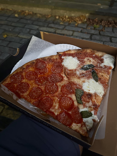 Read moreThe Bad: Oily. Patting down a slice soaked an entire napkin. After that, there was still somehow oil running down my hands. Expensive. The cheese slice felt light for $3.50. The burrata slice was $6. It was filling, but $6 is a lot for any slice. Sauce. The tomato sauce is bland and meshes with the base layer of cheese to form a texture I can only describe as "mushy." The mushiness is partly mitigated by the crispy crust, though.