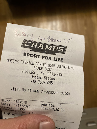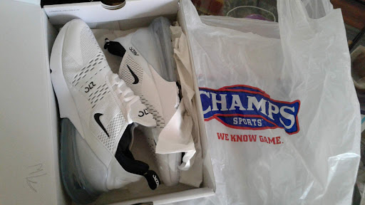 Read moreI am providing 5 stars, this was my first time buying apparel from a champs store, I remained extremely pleased with my purchases. Multiple employees helped me, I received points in my account that I have with champs for my expenditure, I was satisfied with my journey here. I was stimulated, much relieved, remaining here. I shall always return, the store is clean with a lot of apparel. As soon as I entered the store, an employee approached me, helped me find some stuff within rendering a tour, I found every clothing I desired, the music was loud with awesome quality, they have a fitting room here which was big within clean, which I adored. So far, I loved being in this store. I remain a returning customer, champs is...