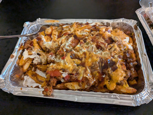 I pass by this store all the time but didn't know they sell food! I was craving something rich and heavy when I discovered that they sell things like loaded fries. When I went there, I ordered the loaded fries and lamb over rice. The staff were friendly and even gave me free chocolate because it was my first time :)