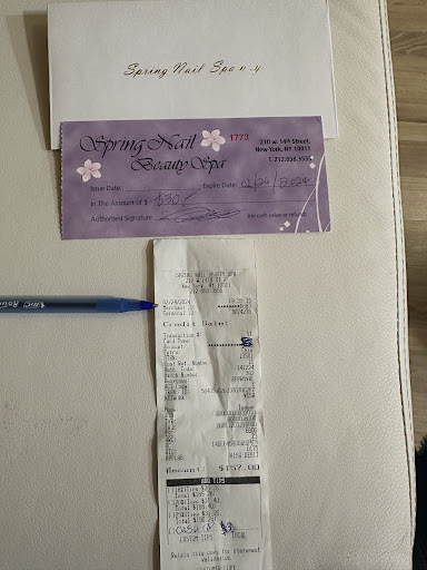 Ā Ā Ā Read moreWORST manicure I have ever gotten. They removed my UV gel mani and replaced with dip. Manicurist had a hand tremor so experience was super unpleasant, my nails were fragile from removing the UV gel and she completely butchered them, I kept begging her to be more gentle and she just hacked away at them with a metro card (which is normal in nyc but Iāve always hated it, so painful and unsanitary). Nails starting chipping within 2 days and starting coming off entirely within 3. I went back for fixes and once again they started chipping and coming off within a few days. I went back again and begged the manager for a refund so I could get them redone somewhere else but she refused. Instead she fixed the ones that came off again and put another coat on all of the others. Once again a few days later they were chipping and coming off, so I went back in because the manager had told me she would keep doing fixes. The manager was not there and the other staff knew the situation but were very rude, insisting it was all because my nails were thin, and this never happens with other customers - I know for a fact this is not true because multiple women in my building told me they had the same experience there. The staff told me they would fix my nails in a few hours, but I was so upset by how rude they were that I finally caved and went to a different salon where they had to remove my entire manicure and start over. Btw no frills at Spring - no back massage, hot towel, hand massage, cuticle oil. When youāre done they stick you at a drying station and forget you exist. Could not pay me to go back there and I will be warning...
