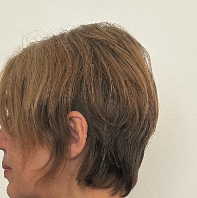 Was a recent hair correction model there (april 25, 2024) for Julio. I went in with a reddish (produced by two home bleaching and some pink color deposit shampoo) with bands of color from DIYāing my hair at home. I didnāt mind the bands or brassy orange, but was curious to take Julio up on his offer to address my roots.