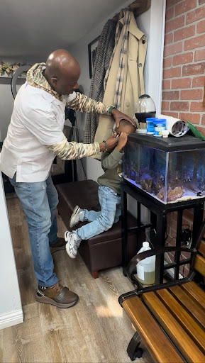 Read moreBleu has been cutting my son’s hair for almost 2 years now and every time we go it’s an experience. My son has developmental delays and really struggles with loud noises — he especially doesn’t like the sound of clippers and usually ends up screaming during haircuts. But bleu never gets flustered. He takes his time and gives him breaks when he needs them. Always determined to get the job done even when I’m overwhelmed and ready to give up and go, he tries many things to get the job done, from putting on his favorite show, letting him hold his antiques to even standing up and cutting his hair at the fish tank. He’s incredibly patient and kind. It’s hard to find someone so understanding and caring. We’re so grateful for him and highly...