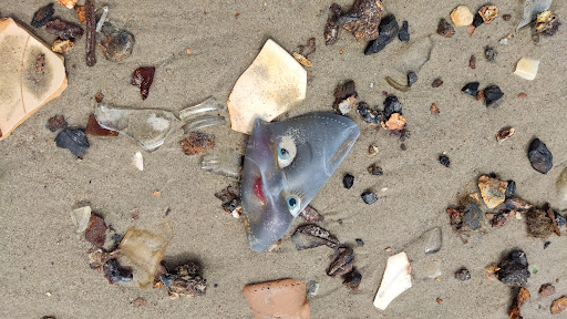 The introduction of the automobile brought an end to carriage horses, and thus an end to horse-ren-dering plants. In the late 1920s the factories shut down and the city poured sand, silt, and garbage into the channel separating Barren Island from the mainland. The area functioned as a garbage dump until 1953, when the landfill was capped. Decades of erosion have uncovered the artifacts that dot the shore today. Glass bottles make up most of the debris— hence the bay's nickname, Bottle Beach-but you may also find saddle fragments, equine teeth, art-deco cosmetics cases, and broken toys. All are from 1953 or earlier, making the bay a garbage-strewn portal...