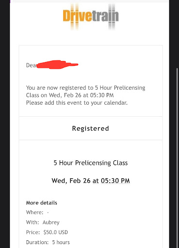Enter Drive Train and Aubrey...first of all, he is a really, really nice person. Super patient, funny AND knowledgeable, always on time, and the consummate professional. I used to joke with him that he was the âdriving whispererâ ď . He will explain the rules of the road in English, not in the confusing language of the manual. He will make it applicable to your safety, to the safety of others, which will make it stick in your mind and in turn will make you a better, SAFER, more confident driver. He will make you practice your weaknesses until they no longer exist or until at least they are SO much better that you WILL pass your test. I just did! And I owe it to all the pointers, patience, and support of Aubrey and Drive Train. If you are a nervous driver, or have not been able to pass the test due to nerves, or if you are a new driver who wants to pass on the first try...this is the school and the...