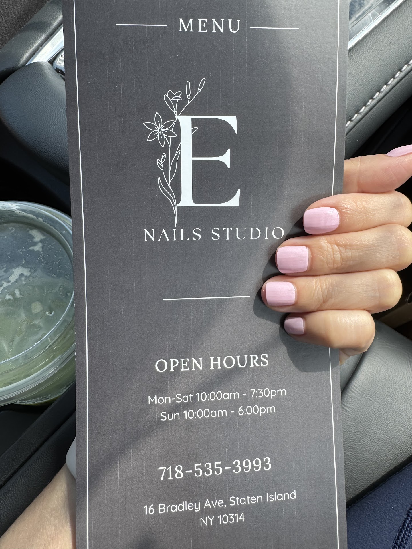 Read moreI can't say enough good things about E Nails Studio! From the moment I walked in, I was greeted with such warmth and friendliness – it felt like I was catching up with old friends rather than just visiting a business. The customer service here is top-notch; everyone goes above and beyond to make sure you're comfortable and satisfied.