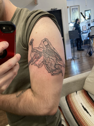 Read moreCaesar is without question the man when it comes to any woodcut/engraved style tattoos. I was struggling for a while to find an artist who was able to tackle the design I had in mind, and was ready to give up on it until I had Caesar and East Side Ink recommended to me. Despite being several states away, Caesar was kind, responsive, knowledgeable, and really showed he had a deep understanding for what makes tattoos in this style work. East Side Ink is also a very cozy studio, and the other artists/employees (never got their names, sorry) there were extremely kind and welcoming while I was waiting to get started and throughout getting the tattoo done. Couldn't be happier with how my tattoo turned out- price is definitely on the higher end but that's to be expected when getting work of this size and quality.