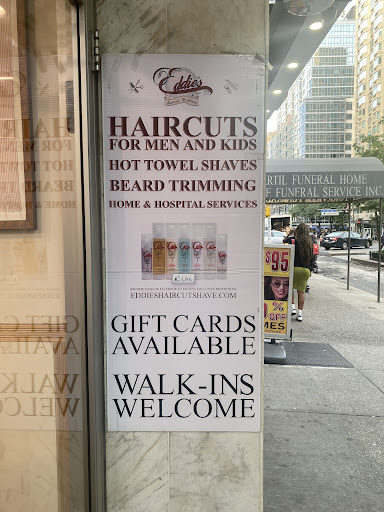 Read moreIt’s astonishing to me that some reviewers can say anything but wonderful things about this fantastic shop. I have lived on the upper east side for over 30 years, and until I found Eddie’s (I had rarely walked on First Avenue...), I was appalled at some of the places in Manhattan that portend to know how to cut hair and shave a face. The important thing about a barber shop is not whether they give you beverages while you are waiting, whether you can also get a shoeshine there, or whether your barber has a lengthy conversation with you as he’s attending to your hair or face. What is most relevant is the quality of the haircut and shave — and in that respect, you would be hard pressed to find a finer establishment...
