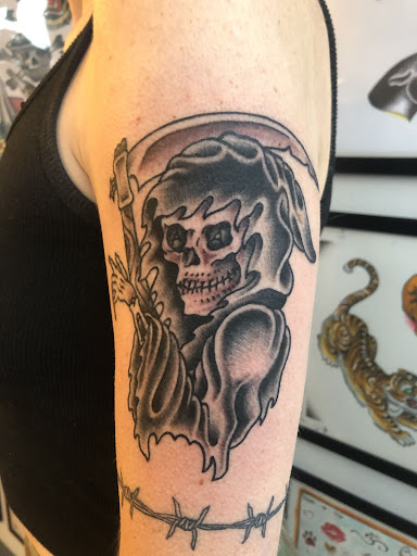 Jae, the owner of the studio, has tattooed me four times and I can easily say that out of my 16 tattoos Jae's work is my favorite. I am always impressed by his ability to translate abstract ideas into art and by his versatility at tattooing diverse styles and designs. My own tattoos are all in black and grey, which Jae has executed perfectly, but I have both watched him tattoo others and seen his healed designs, and can attest to the incredible quality of his work in color as well. He has an intuitive sense of color scheme and application, resulting in beautiful, timeless tattoos that make a statement and endure. Jae works fast and with precision. Each of my tattoos has healed well and remain looking fresh and crisp.