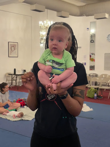 Since starting classes, we have seen exponential improvement in our son’s neck strength and mobility. He is working on rolling, and Aria has come over to help him in class before which felt attentive and personal — it is so nice to get that one-on-one time! Additionally, our son loves flexing his leg muscles and is eager to stand (despite not yet standing in Aria’s hand like the other babies 🤣 — he loves snuggling too much!)