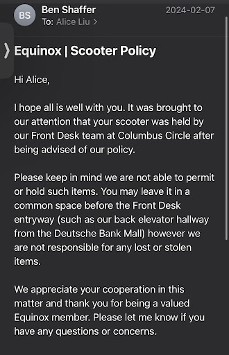 Equinox Corporate turns out to be very unhelpful, keeps asking us to resolve the matter with Equinox Columbus Circle, where the incident happened and the GM doesn't care. Very unprofessional.