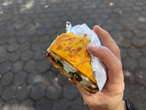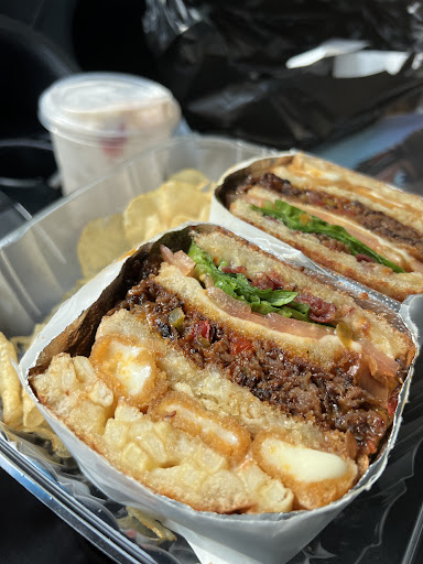 Read moreStopped by to see Ocky. Man has a big heart and really shows that he cares about his customers. I asked for his favorite and this is what I got. Not really sure what the sandwich was comprised of but it was good. Looks like mozzarella sticks, some greens, bacon, and some rice. Was banging. Kind of expensive at about twenty dollars but this is a sandwich you could make two meals out of. Really cool to meet Ocky. If you're in town, it's worth checking out for the loaded sandwiches and wild customer requests. If it's in the store he'd probably throw it on the grill for ya. Man is having a lot of fun with it and it's great to see the success. Only thing is you might have to wait a little. Was busy when I was there around lunch on a Sunday. Would definitely go again to try more of his creations. Hopefully he starts making some healthier options. Most of his stuff is...