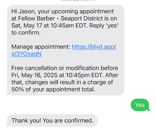 Later that day, I called Fellow Barber to discuss how disappointed I was in the haircut and spoke directly with Sean, the founder. He sincerely apologized and even mentioned to me that he started Fellow Barber due to a bad haircut. He offered to refund me for the first cut and set me up with a Senior Barber named Rob - free of charge. At the moment - things were looking up.