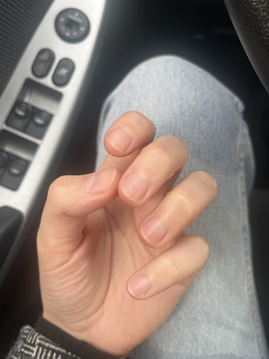 My cuticles were cut, red, and sore The shape was off, and there was no apex structure, especially on the repaired nail The finish looked rushed and uneven